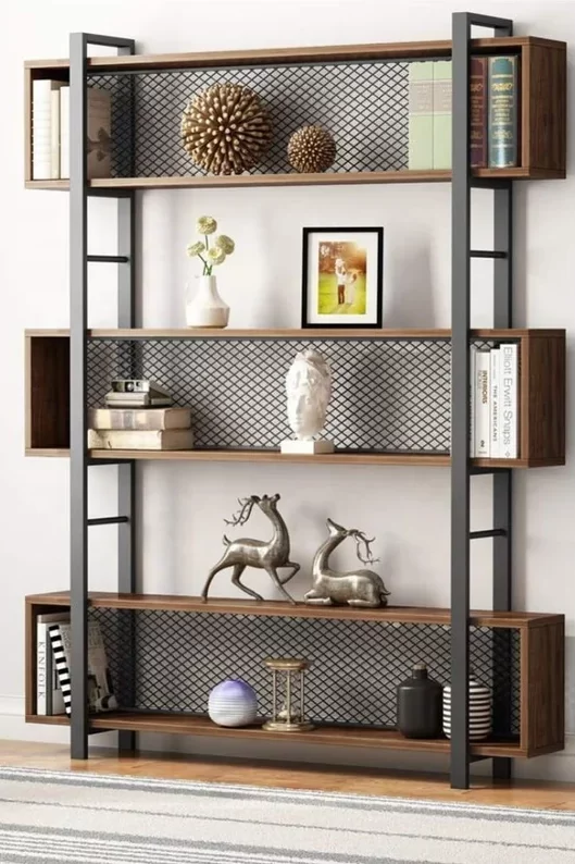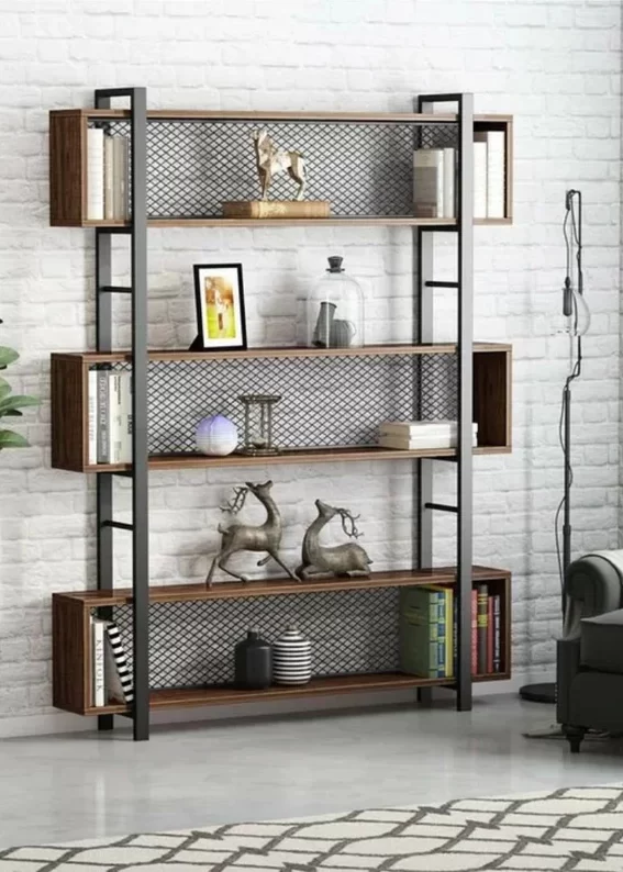 Aesthetic Multi-Purpose Bookshelves Wall, Multi-Tier Wooden Bookcase, Kitchen Metal and Wood Shelves, Office & Home, Handmade Book Storage, Metal Indoor Display, Wooden Book Rack