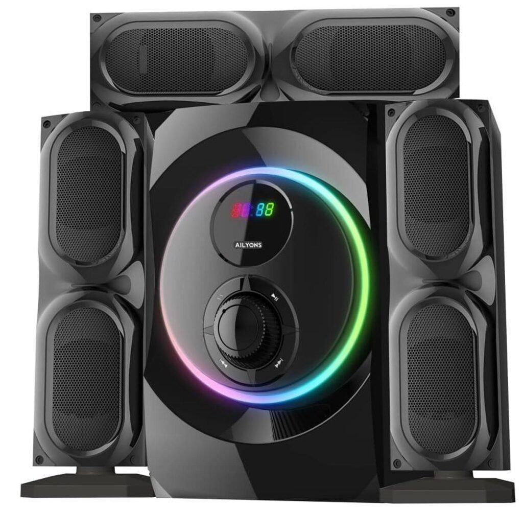 Alyons 3.1 Subwoofer Bluetooth Speaker System offers a complete home entertainment experience with powerful sound and versatile connectivity. Designed with three satellite speakers and a deep-bass subwoofer, it delivers clear highs, strong mids, and thumping lows for an immersive 3.1-channel surround effect. The system supports Bluetooth streaming, FM radio, and USB playback, making it easy to enjoy music, movies, or games from multiple sources. Its sleek design blends well into any living space, while the strong bass output ensures a rich, room-filling audio performance. Perfect for parties, home theaters, or everyday listening, the Alyons 3.1 system combines convenience, style, and power in one package.
