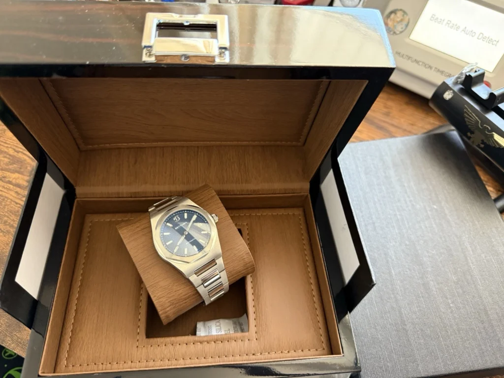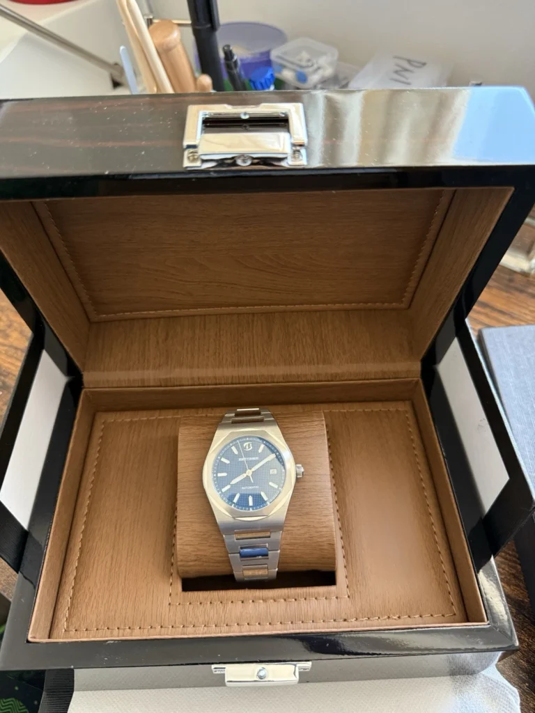 Dial Colour: Elegant blue dial with luminous hands and date display