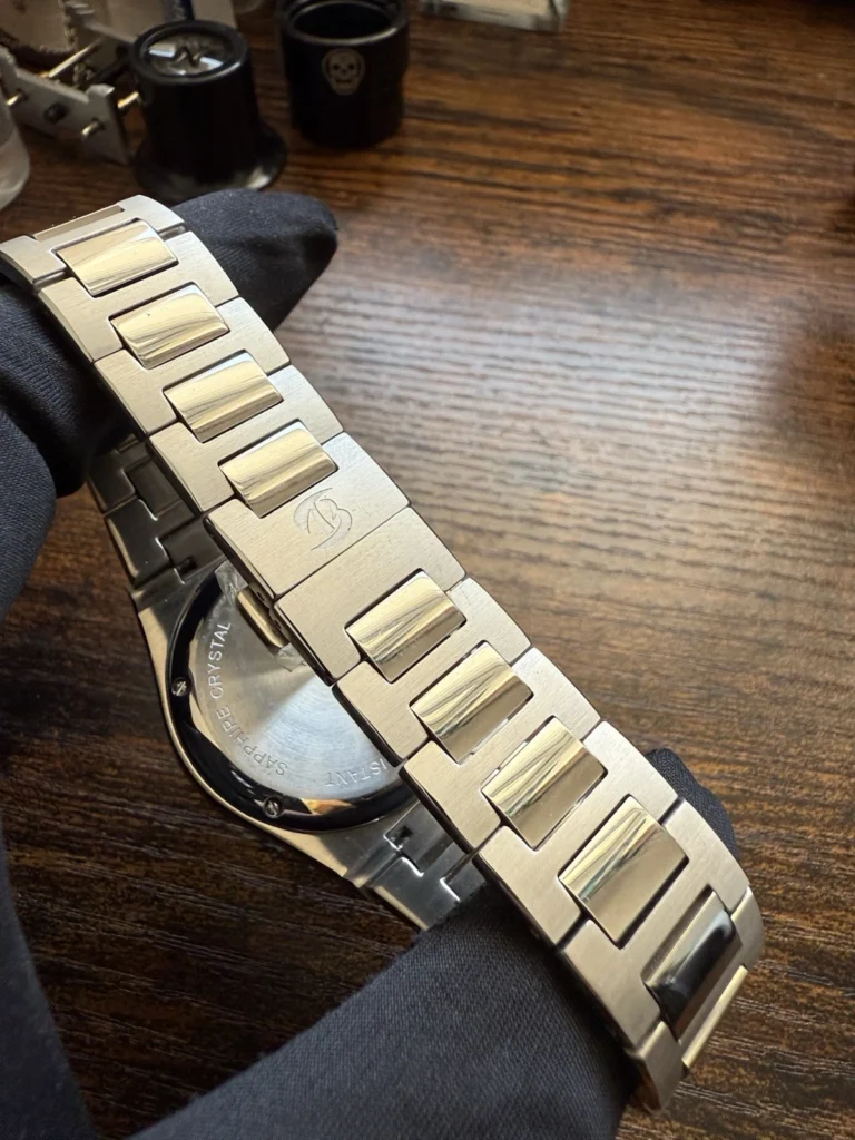 Strap: Stainless steel bracelet with butterfly clasp (22mm width)