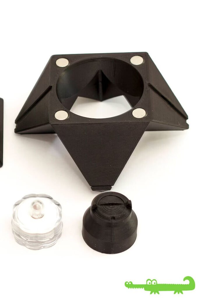 This item is 3D printed at 20% infill, very sturdy. Printed in black PLA plastic.