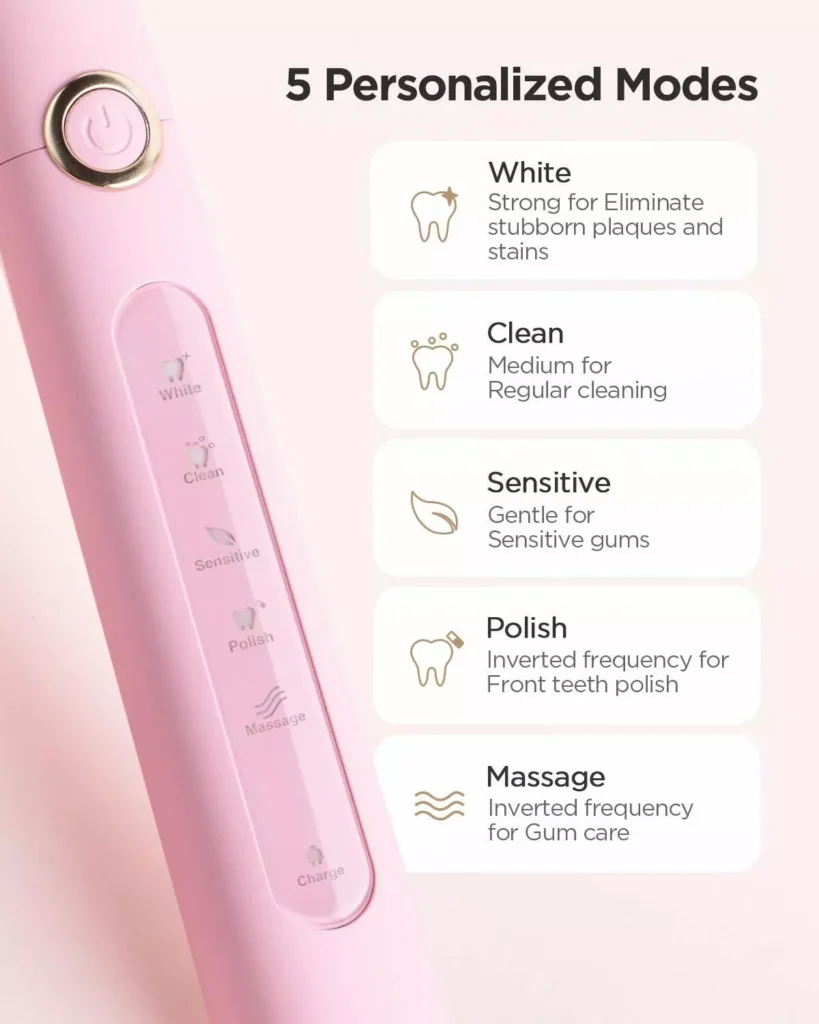 Upgrade your oral care routine with the Fairywill FW-ET507 Sonic Electric Toothbrush. Designed for both adults and kids, this powerful yet gentle toothbrush delivers a deep clean with 5 adjustable speeds and multiple cleaning modes. With a sleek ABS handle, soft nylon bristles, and a fast-charging USB feature, it’s perfect for everyday use and travel.