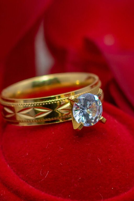 A gold iced stainless steel wedding ring combines the luxurious appeal of gold with the durability of stainless steel, creating a bold and modern symbol of commitment. This type of ring often features a stainless steel base, known for its resistance to tarnish and scratches, layered or coated with gold plating for a rich, elegant look
