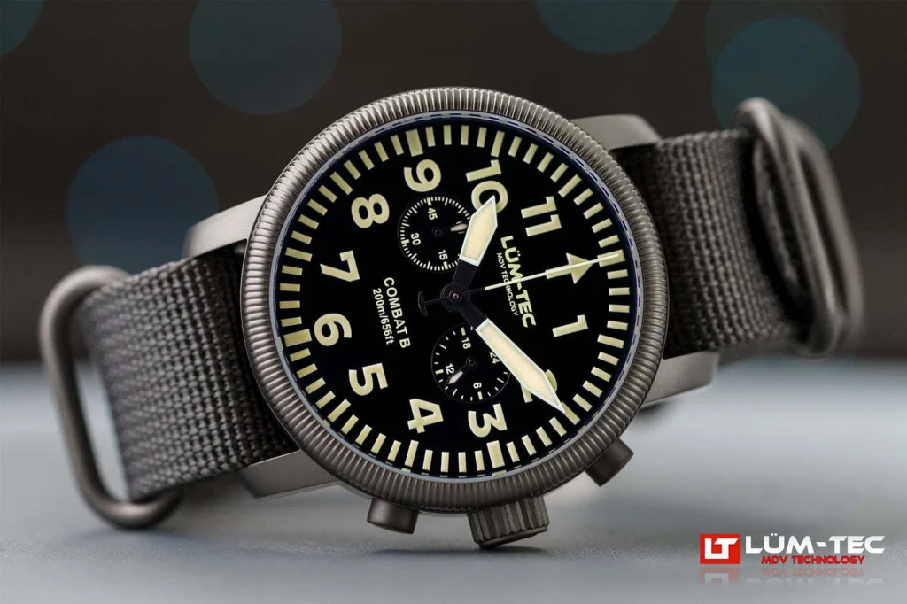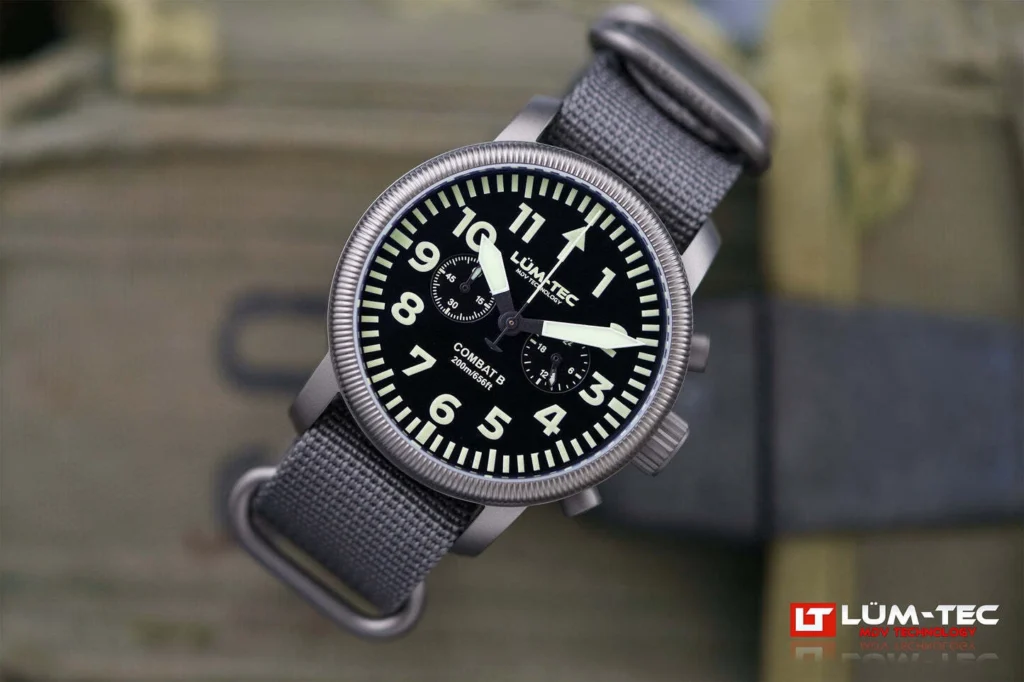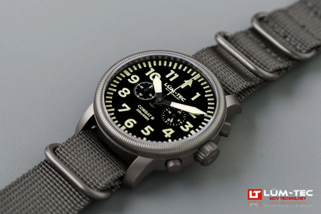 Lum-Tec Mens Watch Combat B65 Chronograph 43mm Black Dial