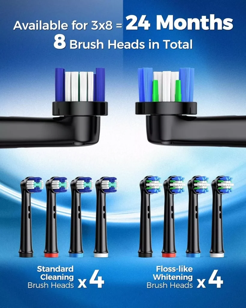 Rotating Electric Toothbrush for Adults with 8 Brush Heads
