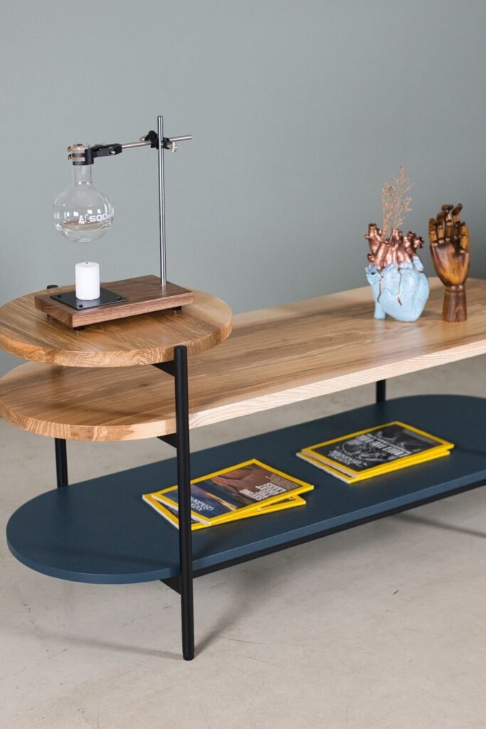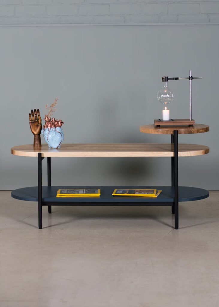 This solid English Ash coffee table is distinguished by its asymmetrical profile. The Level Coffee Table is characterised by its innovative frame and slender proportions that allow for it to effortlessly integrate into an array of environments.