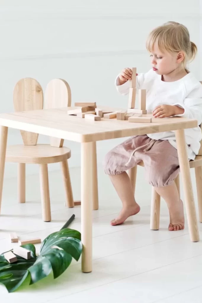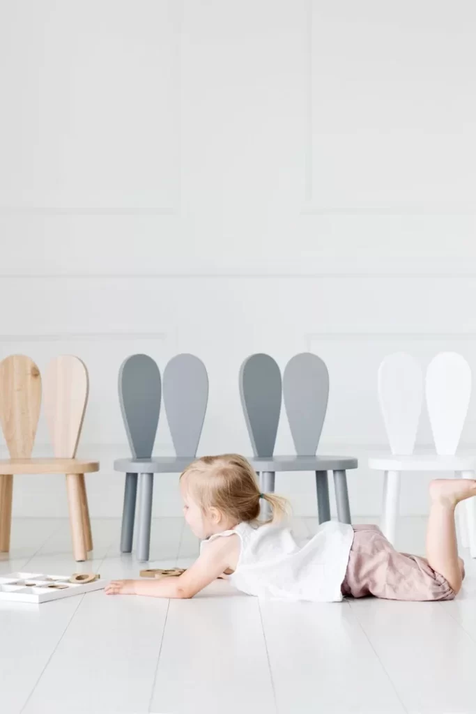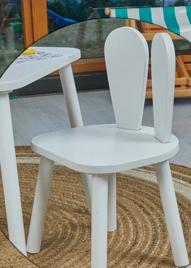 Wooden Kid Table and chair set is a good complement for creativity which is the key to a child’s development according to Montessori. Smartie-Bunny children’s Table and Chair Set encourages your little ones to play, paint and create in style. White Rabbit chair has a design that is optimized for children’s sitting position, designed to support the correct posture of their growing bodies.